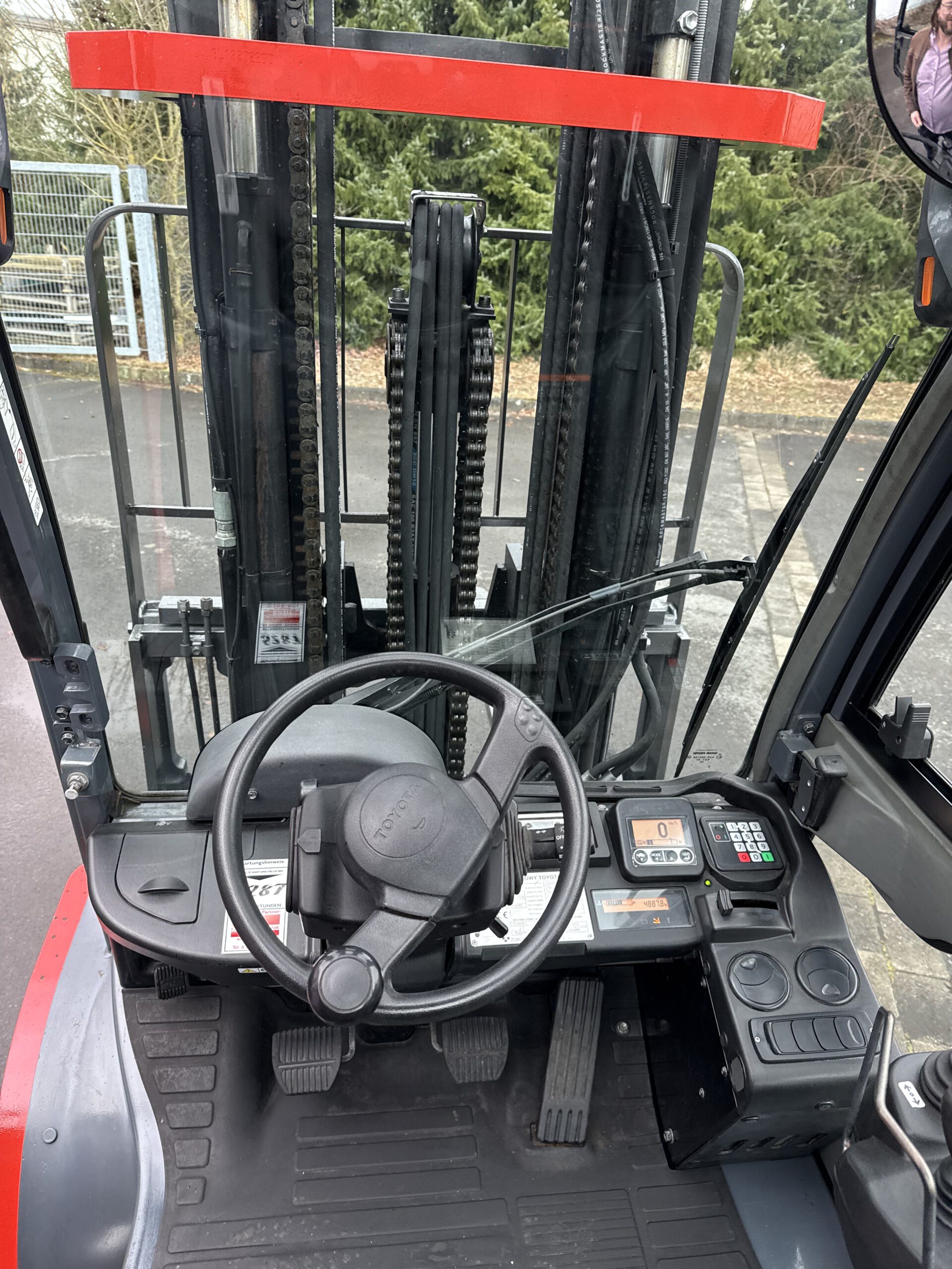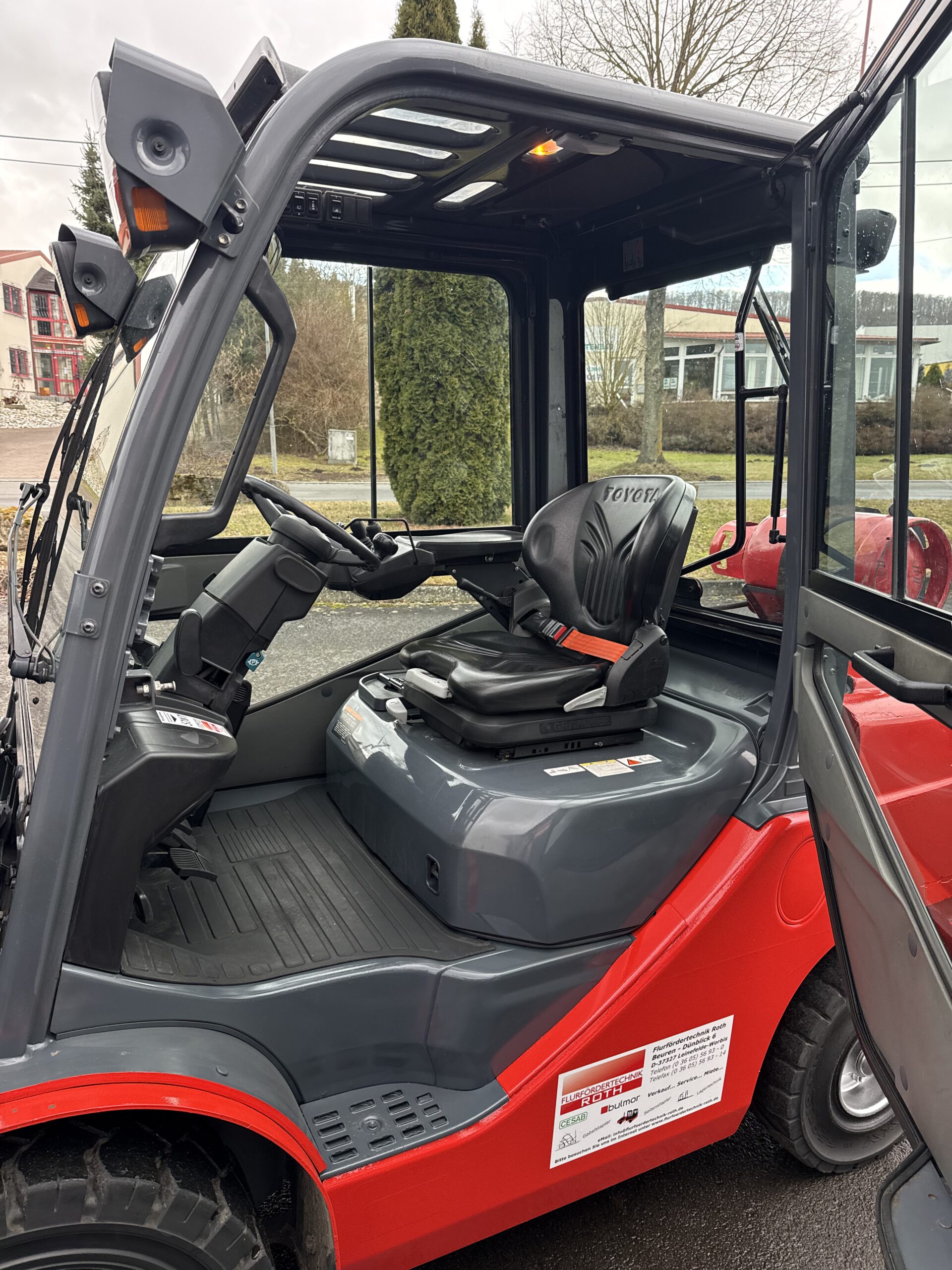 Sonderausstattung: Seitenschieber, 3. und 4. Ventil, Triplex mit Freihub, Lastschutzgitter, Vollkabine mit Heizung, Komfort-PVC-Sitz, Bedienung über 2 Joysticks, Handumschaltung, Panoramarückspiegel, Arbeitsscheinwerfer vorn, Beleuchtung hinten, LED-Blue-Spot vorn und hinten, Warnleuchte auf der Kabine, Wandler-Getriebe, SE-Bereifung